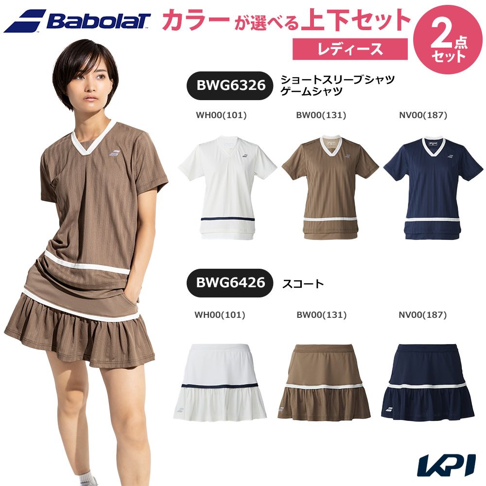 「上下セット」バボラ Babolat テニスウェア レディース ショートスリーブシャツ ゲームシャツ×スコート BWG6326-BWG6426 2026SS