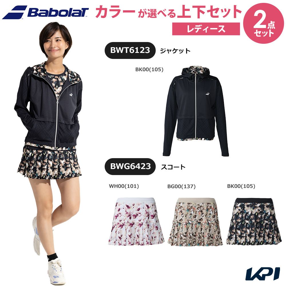 【BWT6123 PLAY JACKET ジャケット】通気性・軽量性に優れたメッシュ素材採用ジャケット。 日焼け防止に最適なアイテム。 【BWG6423 PLAY SKORT スコート】エアリーなプリーツシルエットが特徴的なグラフィックスコート。 チーム対応モデル。
