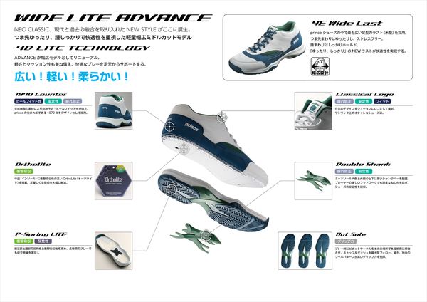 プリンス Prince テニスシューズ ユニセックス WIDE LITE ADVANCE CG ワイドライト アドバンス CG DPS502-215