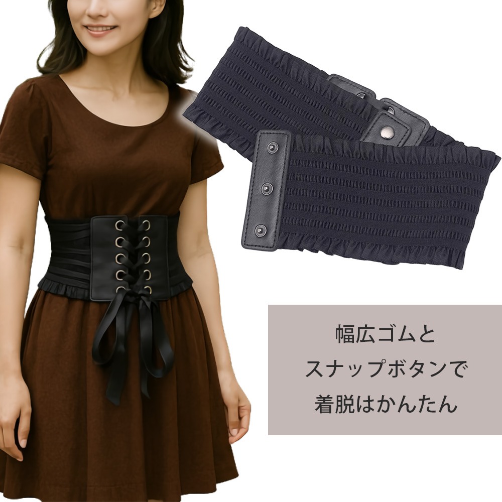 | キーワード | コルセット 風 ベルト ゴム サッシュベルト レースアップ ウエストマーク コ リボン 太ベルト レザー 風 ゴムベルト 太め 幅広 着物ベルト |