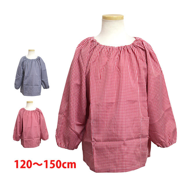 給食 エプロン スモック 長袖 子供用 キッズ 男の子 女の子 チェック柄 学校 子供エプロン 小学生 120cm 130cm 140cm 150cm