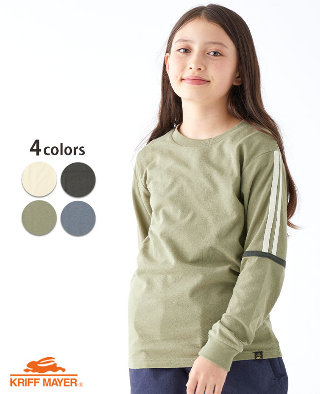 | 《KRIFF MAYER 春アイテム「シャリ天ラインロンT」》 少しシャリ感がありつつも優しい肌触りの天竺。 昨年好評だったラインTシャツがリニューアル!左右のラインの色違いがポイント! -デザイン・スタイリング- ・ライン ・袖リブ ・ブランドタグ ・スポーティー ・カジュアルデザイン ・ボトムスを選ばず活躍 ・ベーシックで着回しやすい -機能- ・洗濯機洗い可(ネット使用) 小学校低学年〜高学年の、キッズ〜ジュニアサイズに加え、 メンズSサイズ以下だけどキッズの160cmでもない。。。 そんな微妙な時期のお子様に対応する170cmまで! 【対象年齢・学年】 5歳、6歳、7歳、8歳、9歳、10歳、11歳、12歳、13歳、14歳、15歳、16歳、17歳 幼稚園年長、小学校1年生、2年生、3年生、4年生、5年生、6年生、中学校、高校生ぐらいまで、 幅広い年齢層に着用いただける、120cm 130cm 140cm 150cm 160cm 170cmの豊富な6サイズ展開です! | ||||||||||||||||||||||||||||||||||||||||||