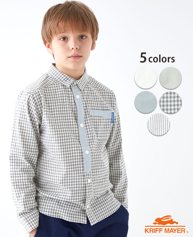 | 《KRIFF MAYER 春アイテム「ボウタイシャツ」》 ハレの日にも、カジュアルに普段使いもできちゃう!おしゃれな配色デザインの前立てがポイント! 今季はポリエステル混になり、乾きやすいメリットが付加されてますます使いやすくなりました! -デザイン・スタイリング- ・入学式、卒業式、入園式、卒園式、発表会、演奏会、七五三、結婚式などのシーンで活躍 ・細いネクタイを付けているような、配色デザインの前立て ・スナップボタン ・胸ポケット ・ブランドロゴタグ ・羽織としてもレイヤードコーデもおすすめ ・カジュアルデザイン ・ボトムスを選ばず活躍 ・ベーシックで着回しやすい -機能- ・洗濯機洗い可(ネット使用) 小学校低学年〜高学年の、キッズ〜ジュニアサイズに加え、 メンズSサイズ以下だけどキッズの160cmでもない。。。 そんな微妙な時期のお子様に対応する170cmまで! 【対象年齢・学年】 5歳、6歳、7歳、8歳、9歳、10歳、11歳、12歳、13歳、14歳、15歳、16歳、17歳 幼稚園年長、小学校1年生、2年生、3年生、4年生、5年生、6年生、中学校、高校生ぐらいまで、 幅広い年齢層に着用いただける、120cm 130cm 140cm 150cm 160cm 170cmの豊富な6サイズ展開です! | ||||||||||||||||||||||||||||||||||||||||||