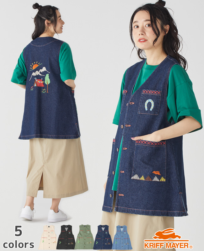 | 《KRIFF MAYER 夏アイテム「刺繍デニムベスト」》 メキシコのフェルト刺繍スーベニアジャケットをイメージし 着やすくデニムベストにアレンジした一枚! オールシーズン対応なので夏はTシャツに、春夏はシャツに 冬はニットやスウェットに合わせてコーディネートが楽しめます。 ステッチカラーも可愛くコーデが華やかに◎ ※インディゴ染めの染料は色落ちしやすい性質を持ちます。 着用・洗濯を繰り返すことにより、少しずつ変化する表情や風合いを楽しむことができます。 その為摩擦や濡れたままでの放置により移染する場合がございます。 取り扱いの際は付属のコーションタグをよくご確認くださいませ。 【対象 ※以下のような方に多くご利用いただいております。】 年代:10代、20代、30代、40代、50代〜 | |||||||||||||||||||||||||||