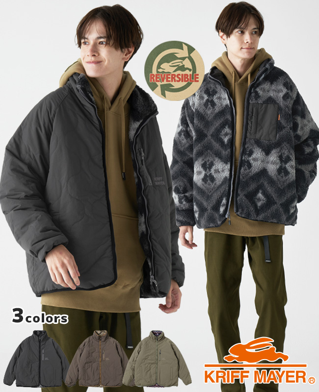 | ミリタリーライナージャケットをイメージした、ひょうたんキルトと、アウトドアライクな柄ボアのリバーシブルデザインの2WAYスタンドネックジャケットです。 ボアフリース面を裏側にすれば高い保温性を発揮! 表側にすれば総柄デザインが楽しめる、個性的なアウターとして着まわせます。 フロントや袖口、裾口などのパイピング使いが特徴。 表裏共にファスナー付き胸ポケットを配したユーティリティさも兼ね備えています。 ややゆったりとしたサイジング。 インナーにロンTやスウェットなどのカットソーはもちろん、プルオーバーパーカーとのレイヤードスタイルもオススメです。 | ||||||||||||||||||||||||||