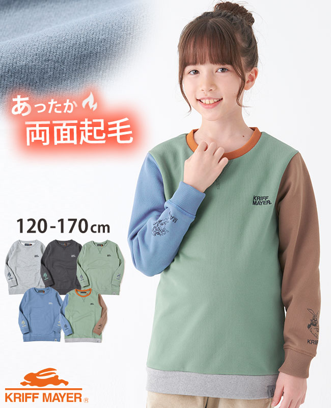 | 《KRIFF MAYER 秋冬アイテム「裏起毛なかよしスウェット」》 ■ポイント 今期イチオシ素材の表ピーチ起毛のスウェット。 ほんのり裏起毛で着心地が良く、お子様も喜んで着てくれる! しっかり厚みのある生地なのでヘタれずデイリー使いにぴったり! 兄弟やお友達、170cmでママと一緒に着た時、 手を繋いだら袖にいるウサトラーズも一緒に仲良く手を繋ぐ。 そんな仲良しな思い出も作れるスウェット! 160cm,170cmは大人の女性の方でも着用可能なサイズ感です。 ■機能 ・保温 ・洗濯機洗い可(ネット使用) 小学校低学年〜高学年の、キッズ〜ジュニアサイズに加え、 メンズSサイズ以下だけどキッズの160cmでもない。。。 そんな微妙な時期のお子様に対応する170cmまで! 【対象年齢・学年】 5歳、6歳、7歳、8歳、9歳、10歳、11歳、12歳、13歳、14歳、15歳、16歳、17歳 幼稚園年長、小学校1年生、2年生、3年生、4年生、5年生、6年生、中学校、高校生ぐらいまで、 幅広い年齢層に着用いただける、120cm 130cm 140cm 150cm 160cm 170cmの豊富な6サイズ展開です! | ||||||||||||||||||||||||||||||||||||||||||
