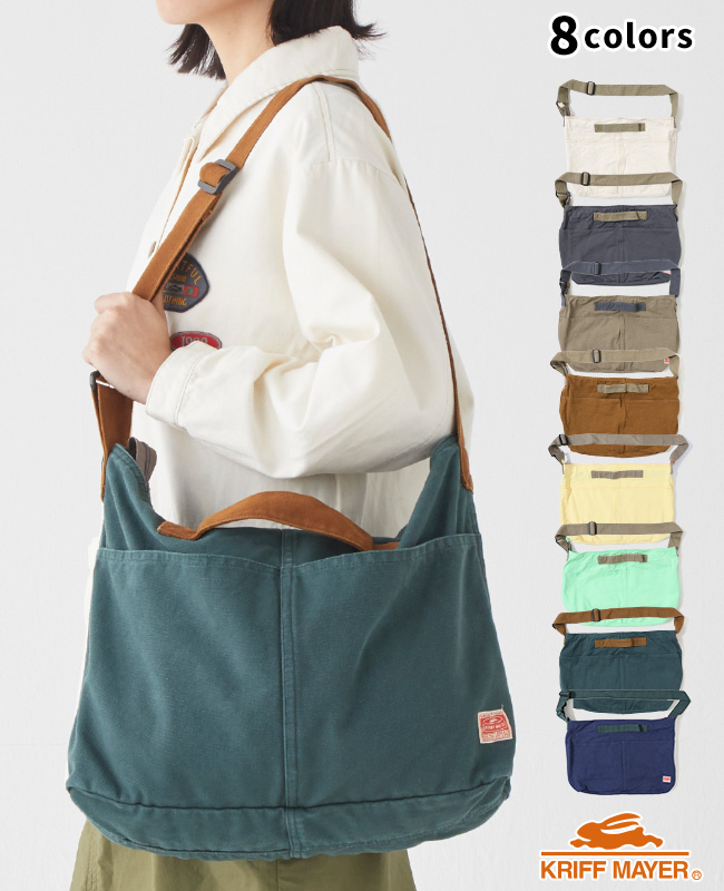 | 《KRIFF MAYER ユニセックスで使えて用途いろいろ「ホーボーバッグ」》 多機能ポケットとたっぷりの収納で 日常のお買い物からお出かけ、通勤や通学、キャンプや旅行、 アウトドアまで幅広く使えるペアレンツバッグ。 大容量なのでマザーズバッグ、ファザーズバッグとしてもおすすめ! オールシーズン活躍する厚手のコットンキャンバス素材を使用。 キャンバス地の使うほどに馴染み、アジを増してゆく風合いがお洒落。 カジュアル、アウトドア、ミリタリーライクな遊び心あふれる雰囲気に。 開閉部分はファスナータイプなので中身が丸見えにならず、荷物を落とす心配もありません。 外側と内側にポケットが付いており、小物の整理がしやすく便利です。 内側にはDカンが付いているので、鍵やパスケースなどを取り付けることが出来ます。 ショルダーとハンドとの2way仕様なので、場面に合わせて使い分けができます。 ショルダーは太めの幅で肩に負担がかかりにくく、アジャスターで長さを調節できるのも嬉しいポイント。 肩掛けも斜め掛けもどちらも使用できます。 肩から掛けられる事で両手が空き、子供を抱っこしたり他にも荷物を持てるので動きやすいです。 持ち手も付いているので車への積み込みなどもしやすいです。 メンズ・レディース問わず、ユニセックス使いができるようシンプルに仕上げました。 家族やカップルでシェアできるのも魅力的◎ 活躍間違いなしのおすすめアイテムです! | ||||||||||||||||||||||||