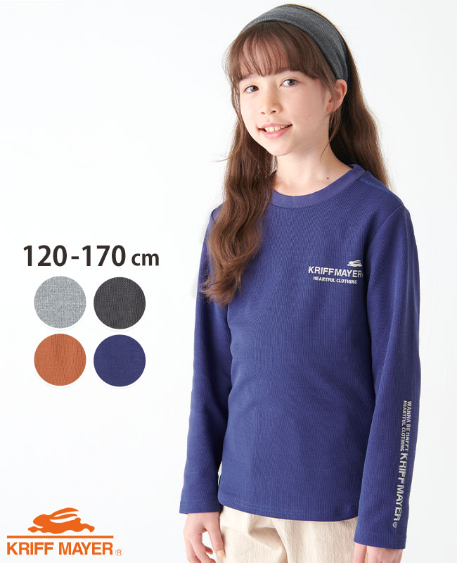 | 《KRIFF MAYER シンプルなデザインだからこそ素材にこだわりました!「さらっとステッチロンT」》 ■ポイント 凹凸のあるワッフル地は楽しみたいけど、肌触りが苦手というお子様におすすめTシャツ! 表裏の両面違う素材を使用しています。直接、肌が触れる裏は凹凸がない平坦な編み目にしてさらっと快適な着心地! 後のステッチやシンプルなロゴプリントがスポーティーな印象に! 裾ラウンドになっていたりとシンプルだけどちょっとしたお洒落ポイントがたくさん詰まっています! 後に再帰反射タグが施されており、夜道で車のライトが当たるとキラッと光ります。 ■機能 ・再帰反射 ・洗濯機洗い可(ネット使用) 小学校低学年〜高学年の、キッズ〜ジュニアサイズに加え、 メンズSサイズ以下だけどキッズの160cmでもない。。。 そんな微妙な時期のお子様に対応する170cmまで! 【対象年齢・学年】 5歳、6歳、7歳、8歳、9歳、10歳、11歳、12歳、13歳、14歳、15歳、16歳、17歳 幼稚園年長、小学校1年生、2年生、3年生、4年生、5年生、6年生、中学校、高校生ぐらいまで、 幅広い年齢層に着用いただける、120cm 130cm 140cm 150cm 160cm 170cmの豊富な6サイズ展開です! | ||||||||||||||||||||||||||||||||||||||||||