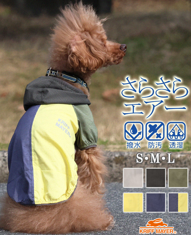 | 《KRIFF MAYER 春夏DOGアイテム「さらさらエアーフードJK」》 毎年大人気のさらさらエアーフードジャケットがドッグウェアで登場! クリフメイヤーのドッグウェアは飼い主ウェアと同じクオリティーで大好評。 メンズアイテムのさらさらエアーとまったく同じ配色のお揃いになっています。 スポーティーながらもPOPで可愛いお洒落アイテムで、撥水/防汚/透湿機能付きでなので小雨程度に対応可能! 前開き面ファスナーで着脱もさせやすく軽くて通気性抜群な為、暑い夏でもサラッと羽織れます。 こちらのアイテムは、メンズサイズ(品番:2347800)レディースサイズ(品番:2347821L)キッズサイズ(品番:2347841K・2347843K)もございますので、家族お揃いコーデが楽しめます! ※大きい犬種はサイズをよくご確認ください。 ※個体差によりサイズが合わない場合があります。ご了承ください。 ※ハーネス穴はございません。 | ||||||||||||||||||||||||||||||||
