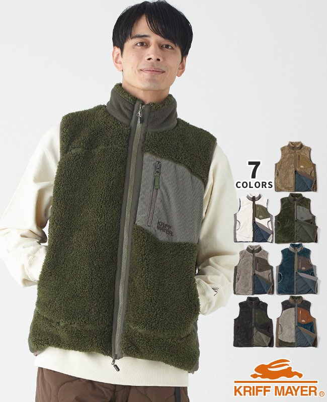 | 《KRIFF MAYER 秋冬人気アイテム「シャギーボアフリースベスト」が今年も登場!》 フワフワな起毛感と、胸ポケットをコーデュロイ素材、脇部分とネック部分をマイクロフリースで切替えた、アウトドアライクなデザインが特徴的です。 さらに裾口・アームホールなど各所のパイピング使いがアクセントになっています。 フロントファスナーには、手袋をしながらでも開閉がしやすいオリジナルの引き手をプラス。 メッシュ素材の裏地付きなので、重ね着しやすく快適な着心地が長続き。 好みのパーカーやシャツ、スウェットなど、気軽にレイヤードコーデが楽しめます。 各所に配色の3本針ミシンを落とし込み、遊び心のある見た目に仕上げました。 街着としてはもちろん、秋冬シーズンのキャンプやアウトドア使いにも映えるオススメアイテムです! 同コンセプトのレディースアイテム(品番:2414414L)や犬服用アイテム(品番:2414409D)も展開していますので、ファミリー・ペアでお揃い風リンクコーデも楽しめます。 | |||||||||||||||||||||||||||||||||||||