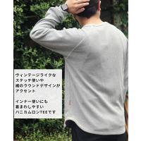 | オリジナルのハニカムサーマル素材を使用した長袖Tシャツです。 ベーシックな印象ですが、ヴィンテージを意識したステッチデザインや、裾のラウンドデザインが特徴です。 インナー使いにも着まわしやすいラグランスリーブ。 袖口にはリブを配しています。 ロングシーズン活躍する着まわしアイテムに仕上げました。 | ||||||||||||||||||||||