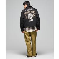 | 40年代に多く見られたメルトンのスポーツジャケットをベースにモディファイ。 モーターサイクルカルチャー感のあるオリジナルグラフィック刺繍を背面に入れた、クラシックなディテールに仕上げています。 メルトン生地特有の着用によるハリ感が損なわれてしまう経年変化を、薄中綿入りのダイヤキルト裏地を採用することで防いでいます。 同時に防寒性もアップしているのが特徴です。 | ||||||||||||||||||||||||||||||||