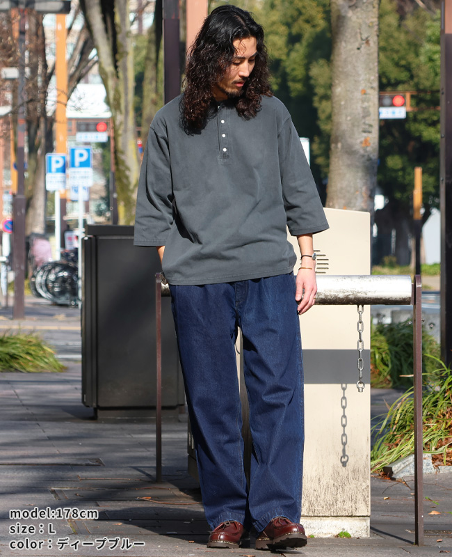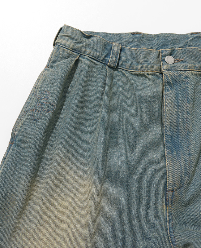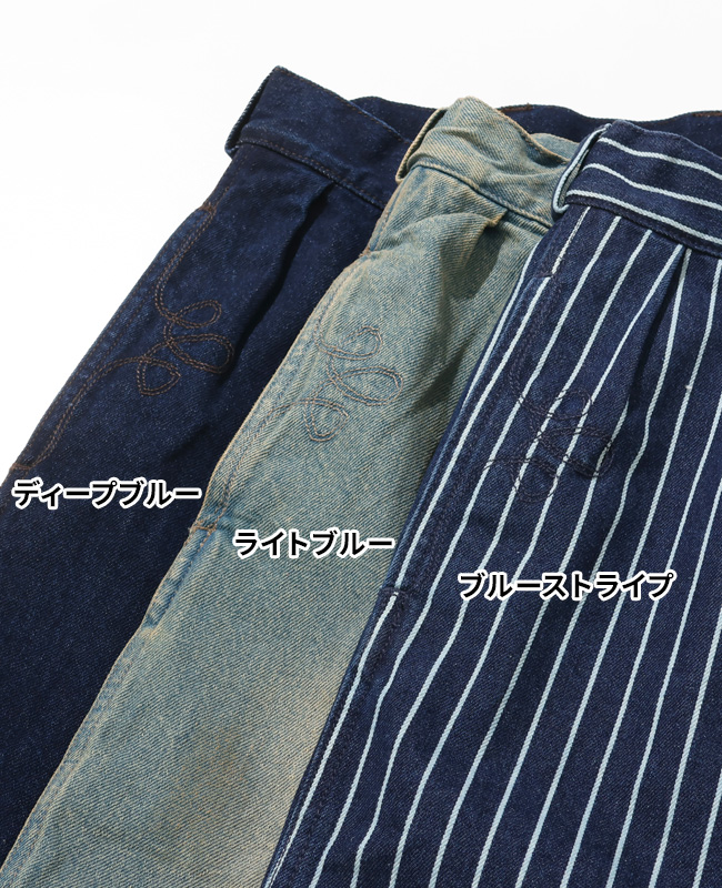 | フランス軍のM-52トラウザーをベースにしたデニムパンツです。 サイドポケットとバックポケット部分にウエスタン調のステッチデザインを施してオリジナリティを表現。 KRIFF MAYERらしいヴィンテージライクなフェード加工を施しています。 ゆったりとしたシルエットでウエストはツータック仕様。 トレンドライクな着こなしが楽しめます。 ライトブルーは古着っぽさを際立たせる為、汚し加工を施してヴィンテージ感のある表情に仕上げています。 ※インディゴ染めの染料は色落ちしやすい性質を持ちます。 着用・洗濯を繰り返すことにより、少しずつ変化する表情や風合いを楽しむことができます。 その為摩擦や濡れたままでの放置により移染する場合がございます。 取り扱いの際は付属のコーションタグをよくご確認くださいませ。 | |||||||||||||||||||||||||||||||||||||||||||||||||||