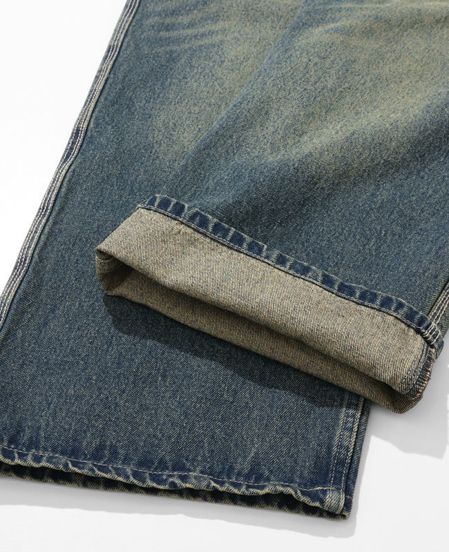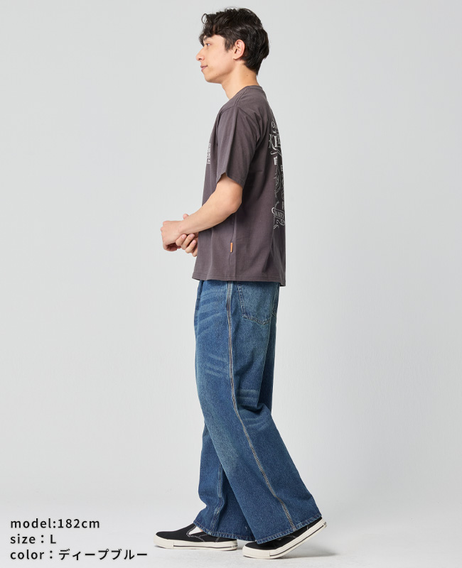 | ヴィンテージのデニムパンツをベースに、トレンドのワイドストレートシルエットにアレンジしたアイテムです。 しっかりとした11オンスのデニムを使用し、脇にはトリプルステッチを施し、ヴィンテージ加工によるパッカリングを強調するようにデザインしました。 スタンダードな5ポケット仕様。 バックにはヴィンテージライクな紙パッチをプラス。 ウエスト部分にシルエットを引き立てるタックを配しています。 ベルト幅に合わせて使用できる2重のベルトループを加え、利便性も向上させています。 ※インディゴ染めの染料は色落ちしやすい性質を持ちます。 着用・洗濯を繰り返すことにより、少しずつ変化する表情や風合いを楽しむことができます。 その為摩擦や濡れたままでの放置により移染する場合がございます。 取り扱いの際は付属のコーションタグをよくご確認くださいませ。 | |||||||||||||||||||||||||||||||||||||||||||||||||||