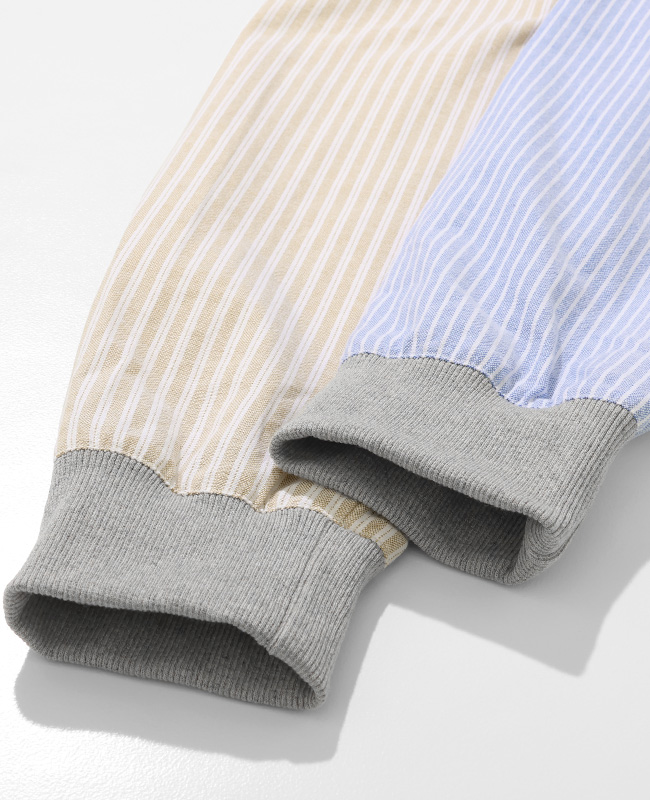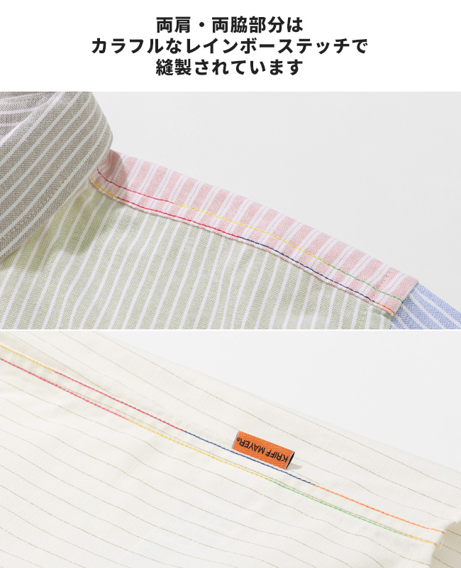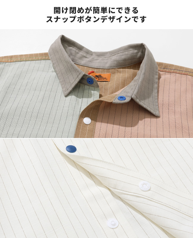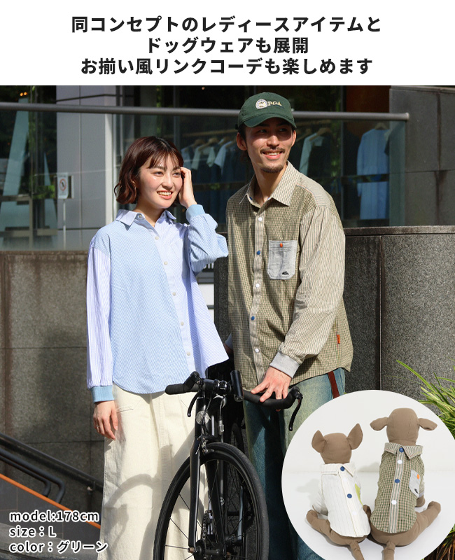 | スナップボタンの配色と切替デザインが特徴的なハッピーシャツが登場! 今季のハッピーシャツは、様々なストライプ柄とチェック柄を使い、清涼感をテーマに春らしい色合いに仕上げました。 フロントは開け閉めが簡単にできるスナップボタンを採用。 洗い場などで簡単に腕まくりができるよう袖口リブ仕様に。 サラッとした生地感で、気軽に羽織れるのも嬉しいポイントです。 胸ポケットは裏毛スウェット生地を使用した異素材切替デザイン。 シンプルな見た目に相反する遊び心のあるデザインとなっています。 トップス使いはもちろん、インナー使いにも映える長袖シャツです。 こちらのアイテムは同デザインのドッグウェア(品番:D2536320)、同コンセプトのレディースアイテム(品番:W2536309)も展開していますので、お揃いやリンクコーデが楽しめます。 | |||||||||||||||||||||||||||||||||||||
