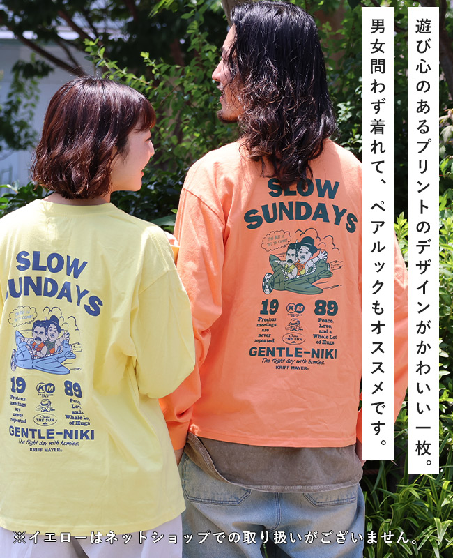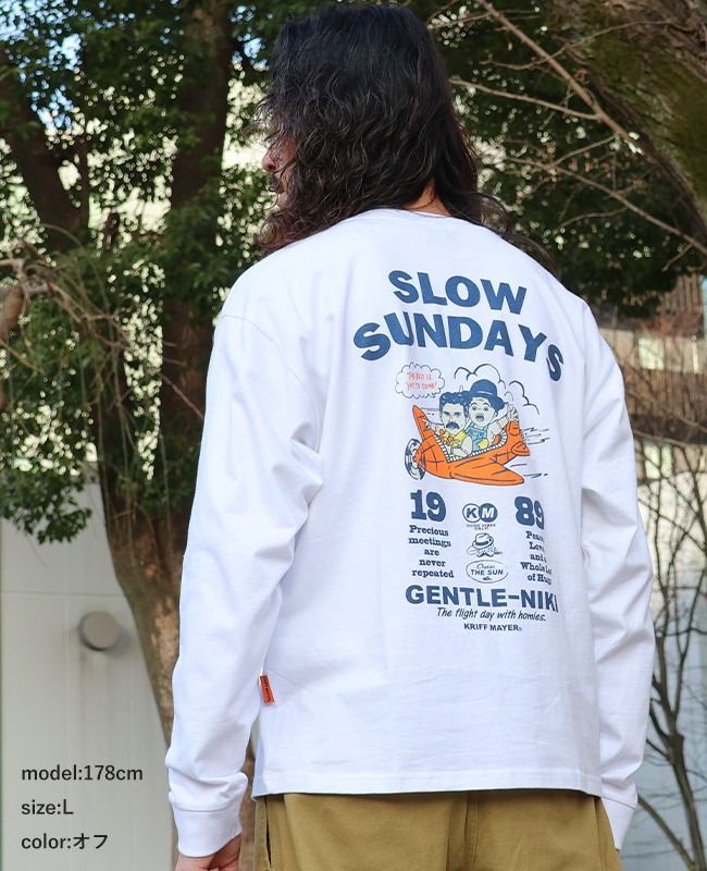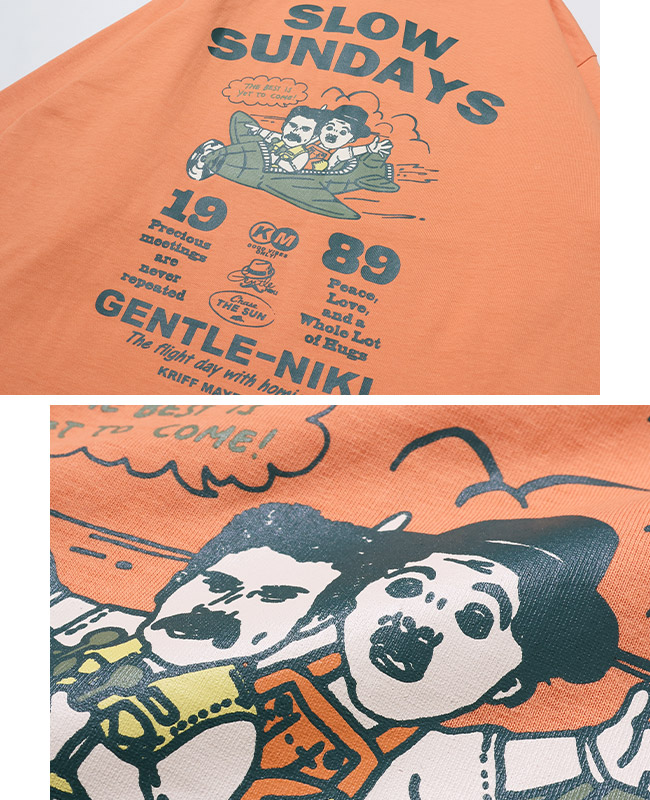 | 《KRIFF MAYER 春アイテム「ジェントルニキロンT(飛行機)」》 どこかで見たことのある人物画を手書きタッチで表現したジェントルニキたち。 おひげが特徴のイケオジ集団です。 ジェントルなアニキの意味を込めてのジェントルニキ。 ちょっぴりクスッとなる新キャラの登場です♪ ジェントルたちも休日は好きなことをして過ごしたい、 日曜日がもっと長ければいいのに…という意味合いを込めて作られたプリントTシャツ。 趣味のフライトで優雅なひとときを仲間とお過ごし中。 “未来にはもっと最高のことが待っている”と希望を掲げたフライトを プリントで表現した遊び心のある一枚。 | |||||||||||||||||||||||||||