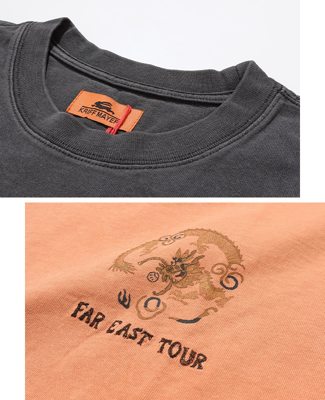 | 《KRIFF MAYER 春アイテム「スーベニア刺繍ロンT(龍)」》 刺繍風の立体プリント技法とチェーン刺繍で仕上げた、 ドラゴンの刺繍にヴィンテージライクな染め加工を施したロンT。 1枚でインパクトのあるデザインです。 綿100%で肌に優しいのも嬉しいポイント。 デザイン性はもちろん、着心地も考えられた優れもの。 ※この商品は独特な風合いを出す為、ピグメント加工を施しております。 染料の特性上、汗や摩擦により移染する場合がございます。 着用の際や洗濯など、取り扱いには付属のコーションタグを必ず参照下さい。 | |||||||||||||||||||||||||||