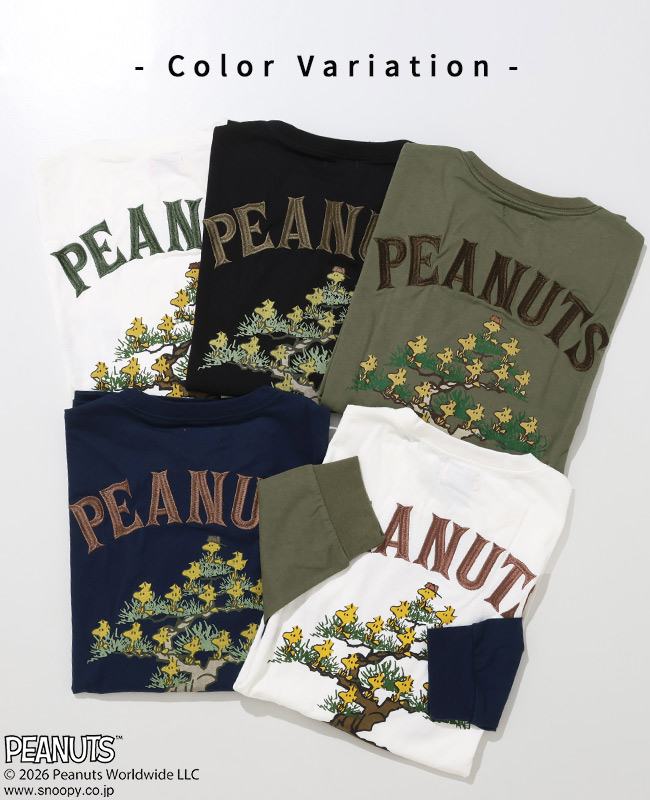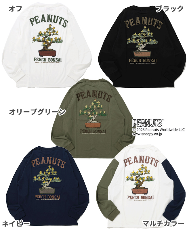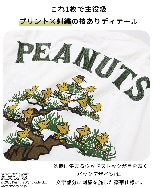 | 《KRIFF MAYER 2026春アイテム 「スヌーピー刺繍ロンT(盆栽)」》 盆栽に集まるウッドストックが印象的なPEANUTSコラボロンT。 フロントには盆栽とにらめっこするスヌーピーのワンポイントプリントが愛らしいデザイン。 バックの文字部分には刺繍を織り込んだ豪華な一着となっています。 ポリエステル特有の速乾性もあり、 表面に抗ピリング糸を使用しているので毛玉になりにくく、便利な素材が魅力です。 メンズだけでなくレディースもユニセックスで着用いただける一枚になっていますので、 お揃い・ペアルック・リンクコーデをお楽しみいただけます。 | |||||||||||||||||||||||||||