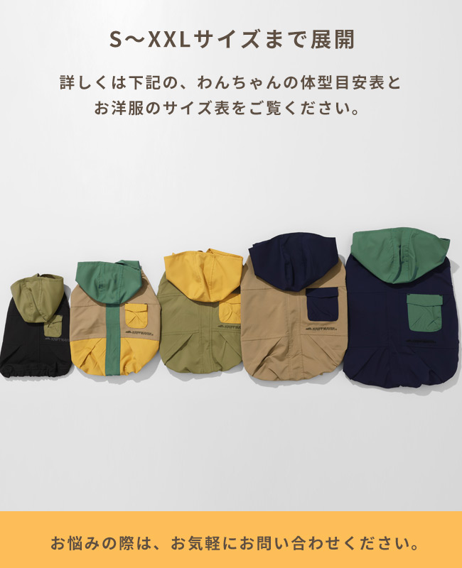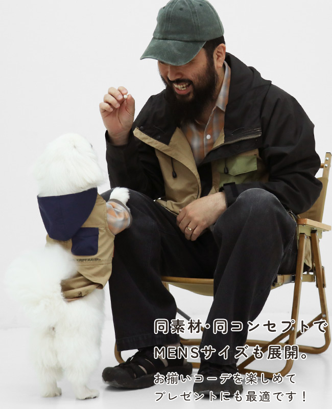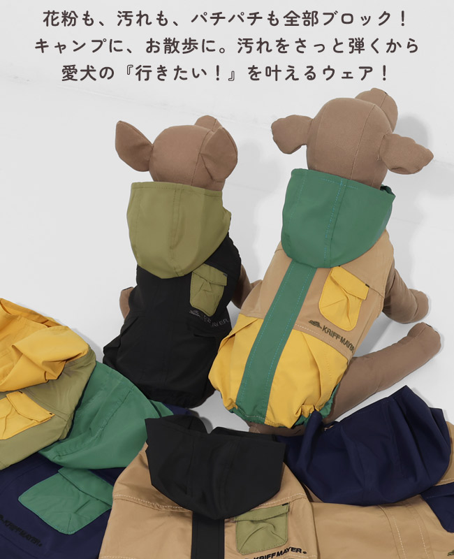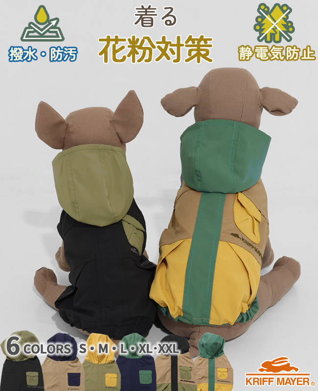 | 《KRIFF MAYER 春アイテム「DOG花粉ドロップフードJK」》 花粉が多く飛ぶ季節に役立つライトアウターです。 お散歩の際にワンちゃんに花粉がついてしまい、そのまま室内に・・・なんてことも! 少しでも防げるようにという思いで生まれたアイテムです。 生地には静電防止加工が施されており、花粉だけでなく埃など静電気で付着しやすい細かいゴミまで付きにくくします。 さらに撥水防汚もついて機能盛りだくさんなアウトドアに最適ジャケットに仕上がりました。 地味でシンプルになりすぎないように、ポケットやフードを配色にして 面ファスナーでガバっと前が全部開くので着脱も簡単◎ 機能だけでなく可愛い見た目や着心地にも拘っています。 他にないドッグウェアで他のわんちゃんと差別化できる一枚です! こちらのアイテムは同素材・同コンセプトのメンズアイテム(品番:2537805)がございますので 愛犬とのお散歩に役立ち、お揃い・ペアルック・リンクコーデをお楽しみいただけます! ※ハーネス穴はございません。 ※アイテムによってサイズ感が異なる為、数値をよくお確かめください。 | ||||||||||||||||||||||||||||||||||||||||||