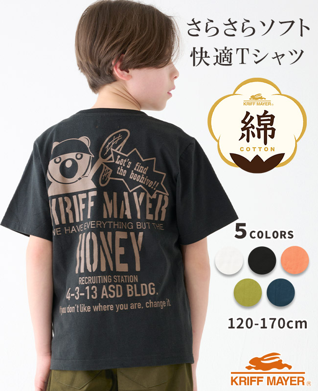| 《KRIFF MAYER 2025年夏新作 半袖Tシャツ「楽LUCK-T(はちみつハンター)」》 綿100%で気軽に着られる! 元気に帰ってきて欲しい「GOOD LUCK」の意味も込めた楽LUCKシリーズ。 インドの高温多湿気候で育った綿花を作った生地。 サラサラとソフトな肌触りが特徴で、通気性と吸汗性に優れています。 只今はちみつハンター急募中!はちみつ以外はなんでも揃ってます! 小学校低学年〜高学年の、キッズ〜ジュニアサイズに加え、 メンズSサイズ以下だけどキッズの160cmでもない。。。 そんな微妙な時期のお子様に対応する170cmまで! 【対象年齢・学年】 5歳、6歳、7歳、8歳、9歳、10歳、11歳、12歳、13歳、14歳、15歳、16歳、17歳 幼稚園年長、小学校1年生、2年生、3年生、4年生、5年生、6年生、中学校、高校生ぐらいまで、 幅広い年齢層に着用いただける、120cm 130cm 140cm 150cm 160cm 170cmの豊富な6サイズ展開です! | ||||||||||||||||||||||||||||||||||||||||||