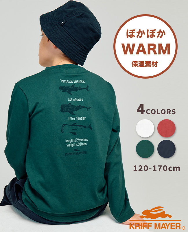 | 《KRIFF MAYER 2025秋冬アイテム「ぬくテクロンT(ジンベイザメ)」》 これ1枚で暖かくて、おしゃれもバッチリ! 寒い日でも暖かく過ごしてほしいけど、「重ね着はイヤ!」というお子さま、いませんか? そんなお悩みを解決するために、綿混素材ならではの自然な肌触りと保温性を兼ね備えた生地を採用。 1枚でサマになるカッコいい長袖Tシャツをつくりました。 背中にはジンベイザメの秘密がプリントされています! 小学校低学年〜高学年の、キッズ〜ジュニアサイズに加え、 メンズSサイズ以下だけどキッズの160cmでもない。。。 そんな微妙な時期のお子様に対応する170cmまで! 【対象年齢・学年】 5歳、6歳、7歳、8歳、9歳、10歳、11歳、12歳、13歳、14歳、15歳、16歳、17歳 幼稚園年長、小学校1年生、2年生、3年生、4年生、5年生、6年生、中学校、高校生ぐらいまで、 幅広い年齢層に着用いただける、120cm 130cm 140cm 150cm 160cm 170cmの豊富な6サイズ展開です! | ||||||||||||||||||||||||||||||||||||||||||