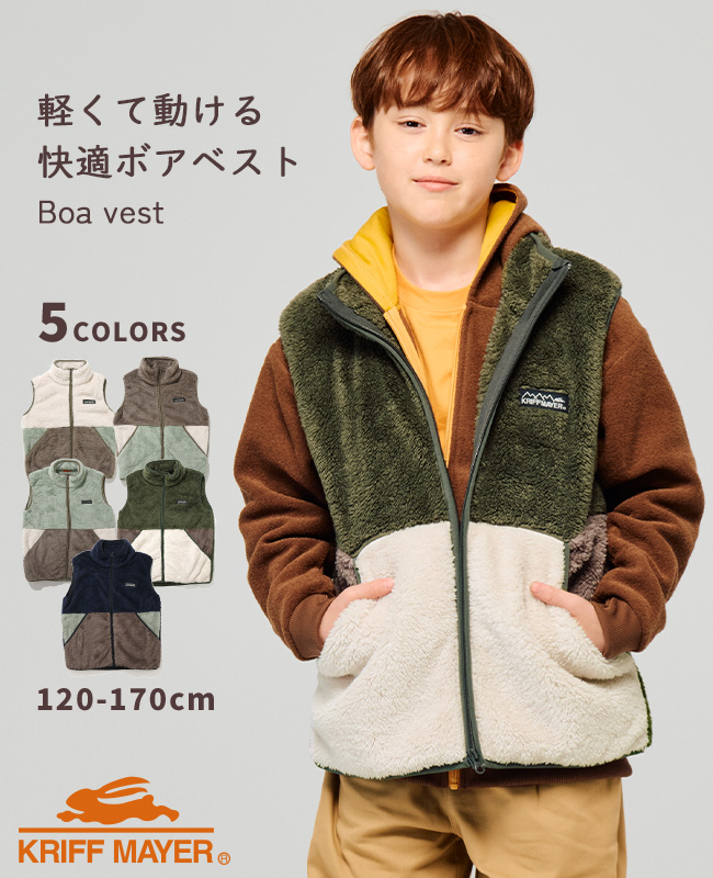 | 《KRIFF MAYER 2025秋冬アイテム「切替ボアベスト」》 肌寒い季節に重宝する、使い勝手のいいベスト。 アウターの上にも中にも重ねやすく、塾や学校の授業中など、室内外問わず活躍する万能アイテムです。 裏地をあえて省くことで、軽やかな着心地とストレッチ性を向上。 お子さまの動きを制限せず、長時間の着用でもストレスフリー。 さらに、目を引くのはおしゃれな配色デザインでコーディネートのアクセントとしても大活躍。 男女問わず着やすいカラー展開で、ファッションにこだわるお子さまにもおすすめです。 季節の変わり目や気温調整が難しい日にも、一枚あると安心。 機能性とデザイン性を兼ね備えた、毎日に寄り添うベストです。 小学校低学年〜高学年の、キッズ〜ジュニアサイズに加え、 メンズSサイズ以下だけどキッズの160cmでもない。。。 そんな微妙な時期のお子様に対応する170cmまで! 【対象年齢・学年】 5歳、6歳、7歳、8歳、9歳、10歳、11歳、12歳、13歳、14歳、15歳、16歳、17歳 幼稚園年長、小学校1年生、2年生、3年生、4年生、5年生、6年生、中学校、高校生ぐらいまで、 幅広い年齢層に着用いただける、120cm 130cm 140cm 150cm 160cm 170cmの豊富な6サイズ展開です! | ||||||||||||||||||||||||||||||||||||||||||