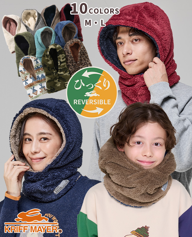 | 《KRIFF MAYER 2025秋冬アイテム「ニンジャりん」》 マフラーより手軽に使えて、ネックウォーマーよりもしっかり暖かい。 フード一体型のボリュームネックウォーマー「ニンジャりん」 ふわふわのボア素材が、頭から首元までしっかりカバー。 防寒性とファッション性を両立した、冬注目のアイテムです。 【商品の特徴】 ・サッとかぶるだけでOK! マフラーいらずの手軽さ ・リバーシブルデザインで2通りのコーデが楽しめる ・ボリュームたっぷりで小顔効果&防寒力◎ ・10代〜60代まで対応!子どもから大人まで幅広く使える ・アウトドアにも映えるデザイン!通学・通勤・お出かけ・キャンプにも 【サイズ・カラー】 サイズ:M/L 男女兼用、家族やカップルでのリンクコーデにもおすすめ カラー展開:10色 オフ(表:オフ 裏:ピンク) グレー(表:杢グレー 裏:オフ) モカ(表:モカ 裏:ネイビー) バーガンディ(表:バーガンディ 裏:ネイビー) カーキ(表:カーキ 裏:ブラック) サックス(表:サックス 裏:グレー) ブルー(表:ブルー 裏:モカ) マルチカラー(表:ノルディック柄 裏:ピンクベージュ) カモ(表:緑褐色系の迷彩柄 裏:ブラック) レオパード(表:レオパード 裏:ブリック) 【こんな方におすすめ】 ・忙しい朝に手軽に防寒したい方 ・雪かきや屋外作業など、雪国での生活をされている方 ・おしゃれも楽しみたい学生・社会人 ・子どもとおそろいで楽しみたい親子コーデ派 ・誕生日やクリスマスなどプレゼントやギフトアイテムを探している方 この冬は、被るだけでかわいくてあたたかい「ニンジャりん」で決まり! こちらのアイテムは同コンセプトのドッグアイテム(品番:D2527816)がございますのでお揃いコーデをお楽しみいただけます! | |||||||||||||||||||||||||||