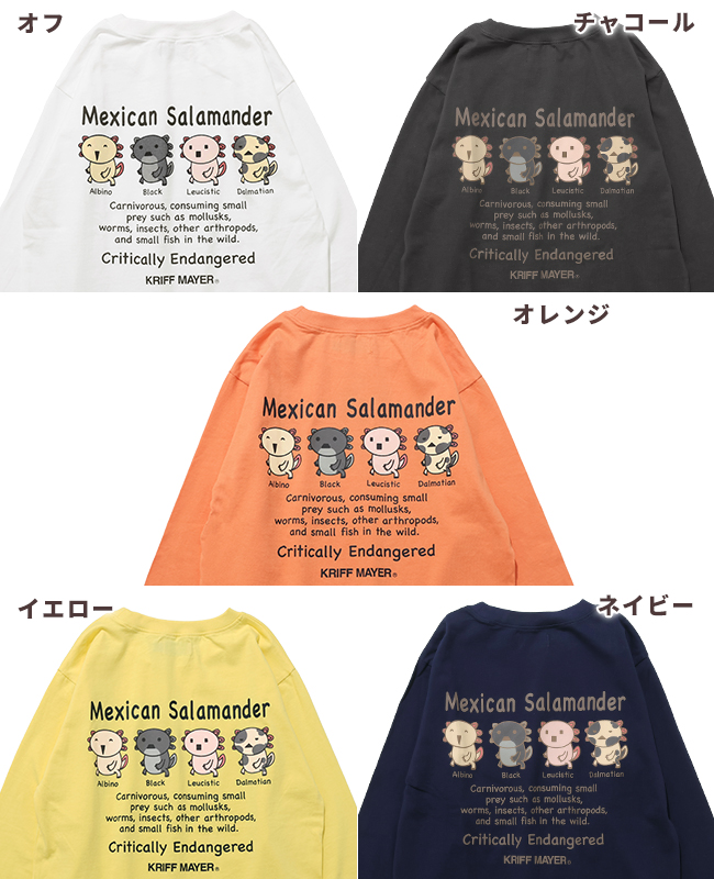| 《KRIFF MAYER 2026春アイテム「楽LUCKロンT(ウーパールーパー)」》 かつて昭和に一世を風靡したウーパールーパーが令和に復活?! なんと最近また密かに人気らしいですよ! とぼけた表情がなんともカワイイ。 実はピンク色だけじゃなくいろんな色のウーパールーパーがいるんです。 お気に入りのウーパールーパーをぜひ見つけてみてください♪ 吸汗・通気性に優れた綿100%素材だから お肌に優しくて夏でもさらっと快適◎ 通学からお出かけ、キャンプなどのアウトドアにもおすすめです。 『 楽LUCKシリーズ 』 お手頃価格で楽に着られる! 元気に帰ってきてほしいGOODLUCKの意味も込めた オリジナルデザイン 小学校低学年〜高学年の、キッズ〜ジュニアサイズに加え、 メンズSサイズ以下だけどキッズの160cmでもない。。。 そんな微妙な時期のお子様に対応する170cmまで! 【対象年齢・学年】 5歳、6歳、7歳、8歳、9歳、10歳、11歳、12歳、13歳、14歳、15歳、16歳、17歳幼稚園年長、小学校1年生、2年生、3年生、4年生、5年生、6年生、中学校、高校生ぐらいまで、 幅広い年齢層に着用いただける、120cm 130cm 140cm 150cm 160cm 170cmの豊富な6サイズ展開です! | ||||||||||||||||||||||||||||||||||||||||||