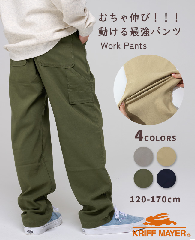 | 《KRIFF MAYER 2025春アイテム「むちゃ伸びワークシルエットパンツ」》 人気のワークシルエットパンツを、春夏にうれしい“超ストレッチ素材”でアップデートしました。 驚くほどよく伸びる生地で動きやすく、長時間穿いてもストレスの少ない快適な一本。 元気に動き回るお子さまでも安心して着用でき、「一度穿いたら手放せない!」と感じるほどの穿き心地です。 通学から休日のお出かけまで幅広く使える、春夏の頼れるパンツです。 小学校低学年〜高学年の、キッズ〜ジュニアサイズに加え、 メンズSサイズ以下だけどキッズの160cmでもない。。。 そんな微妙な時期のお子様に対応する170cmまで! 【対象年齢・学年】 5歳、6歳、7歳、8歳、9歳、10歳、11歳、12歳、13歳、14歳、15歳、16歳、17歳 幼稚園年長、小学校1年生、2年生、3年生、4年生、5年生、6年生、中学校、高校生ぐらいまで、 幅広い年齢層に着用いただける、120cm 130cm 140cm 150cm 160cm 170cmの豊富な6サイズ展開です! | ||||||||||||||||||||||||||||||||||||||||||||||||||||||||||