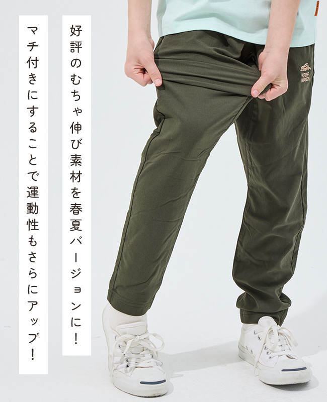 | 《KRIFF MAYER 2026春アイテム「マチ付きむちゃ伸びライトパンツ」》 人気の“むちゃ伸び”素材を春夏向けにアップデートしました。 抜群のストレッチ性に加え、マチ付き仕様で動きやすさがさらに向上。 活発に動くお子さまでも快適に着用できる、春夏にぴったりの一本です。 小学校低学年〜高学年の、キッズ〜ジュニアサイズに加え、 メンズSサイズ以下だけどキッズの160cmでもない。。。 そんな微妙な時期のお子様に対応する170cmまで! 【対象年齢・学年】 5歳、6歳、7歳、8歳、9歳、10歳、11歳、12歳、13歳、14歳、15歳、16歳、17歳 幼稚園年長、小学校1年生、2年生、3年生、4年生、5年生、6年生、中学校、高校生ぐらいまで、 幅広い年齢層に着用いただける、120cm 130cm 140cm 150cm 160cm 170cmの豊富な6サイズ展開です! | ||||||||||||||||||||||||||||||||||||||||||||||||||||||||||