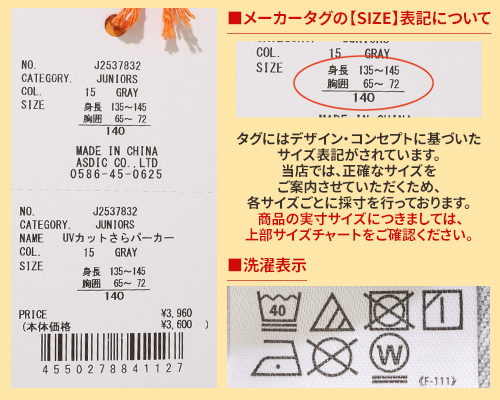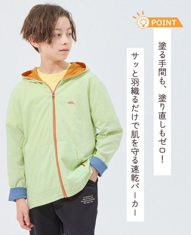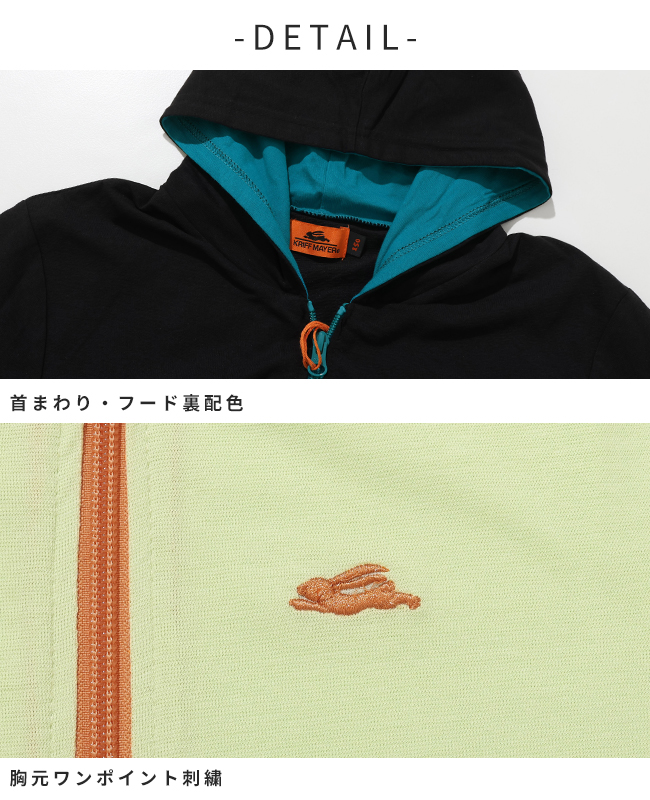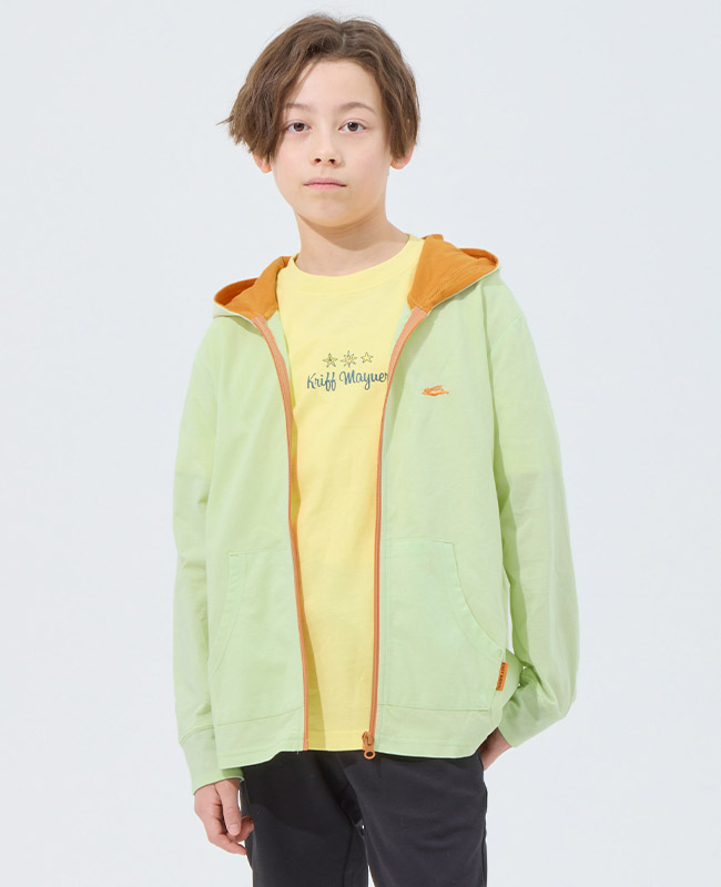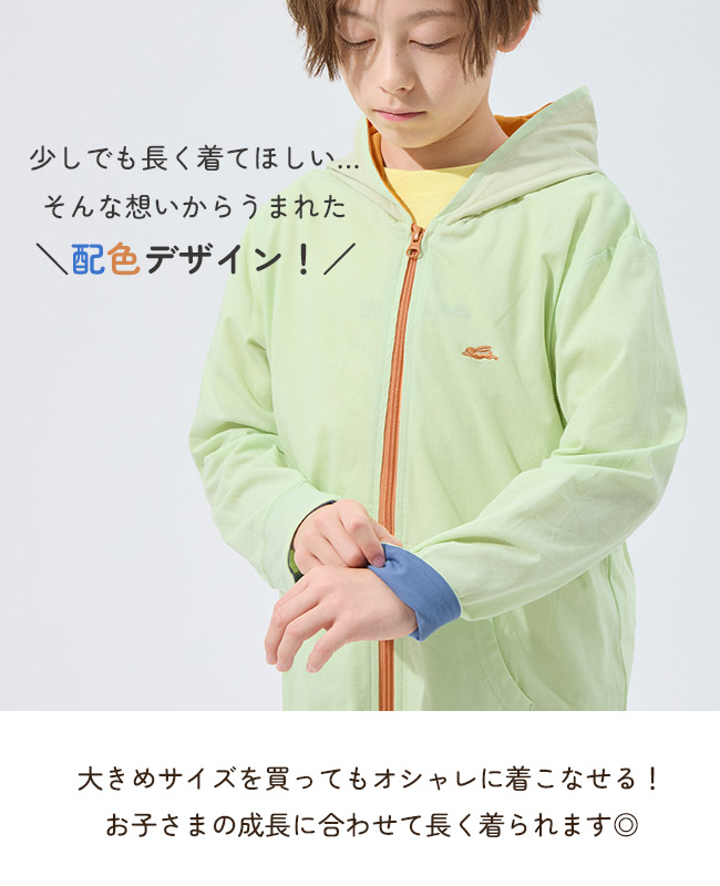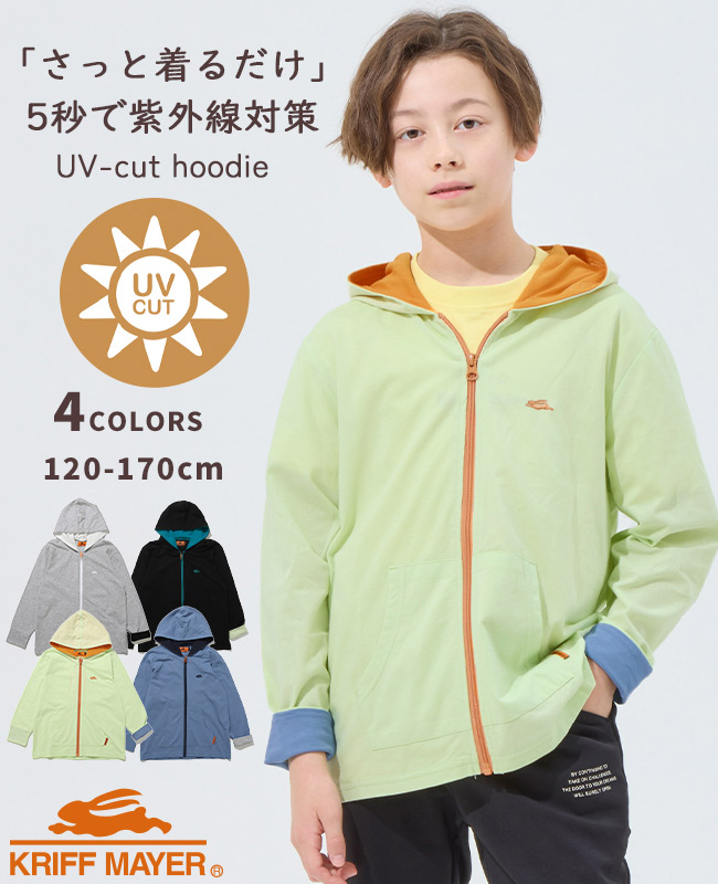 | 《KRIFF MAYER 2026春アイテム 「UVカットさらパーカー」》 着るだけ簡単!春から紫外線対策始めませんか? お子様の肌を守るUVカット加工をかけた長袖パーカーです。 塗るタイプの日焼け止めとは違い、 肌の敏感なお子さまでも取り入れやすい紫外線対策アイテム。 さっと羽織るだけですぐに対策でき、塗り直しなどの手間いらず。 通気性を考えて編んだオリジナル素材は、速乾性にも優れたさらっと快適な着心地。 また程よく薄手で持ち運びにも便利なので、 春から秋の寒暖差や室内での冷房対策としても役立ちます◎ 袖をペロッとめくると配色に!大きめサイズを買ってもお洒落に見え長く着用できます! 同素材のレディースアイテム(品番:W2537817)も展開しておりますので、 ママとお揃い・リンクコーデも楽しめます♪ 小学校低学年〜高学年の、キッズ〜ジュニアサイズに加え、 メンズSサイズ以下だけどキッズの160cmでもない。。。 そんな微妙な時期のお子様に対応する170cmまで! 【対象年齢・学年】 5歳、6歳、7歳、8歳、9歳、10歳、11歳、12歳、13歳、14歳、15歳、16歳、17歳 幼稚園年長、小学校1年生、2年生、3年生、4年生、5年生、6年生、中学校、高校生ぐらいまで、 幅広い年齢層に着用いただける、120cm 130cm 140cm 150cm 160cm 170cmの豊富な6サイズ展開です! | |||||||||||||||||||||||||||||||||||||||||||||||