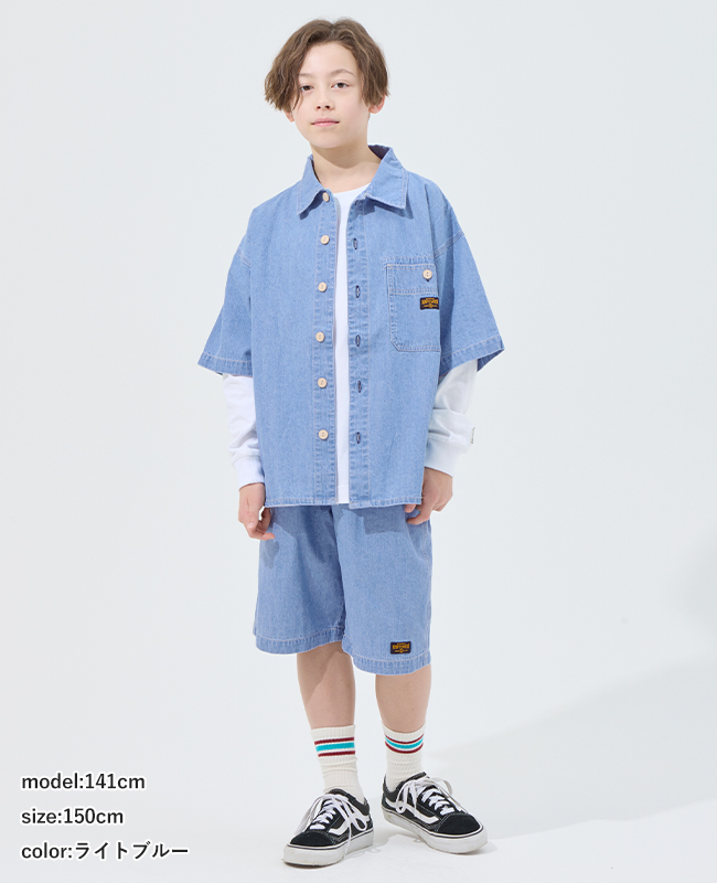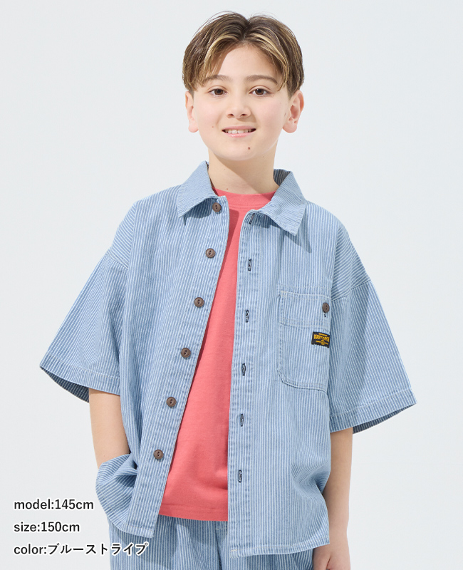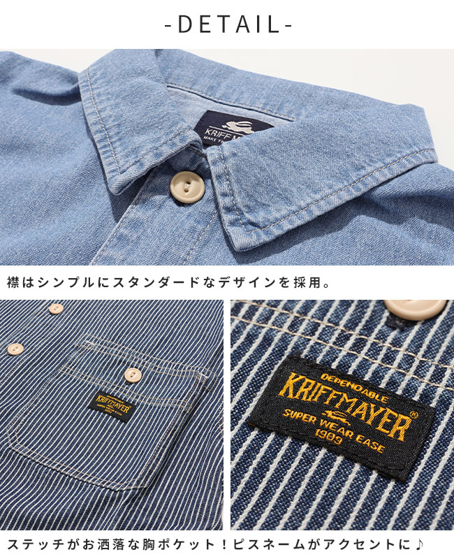 | 《KRIFF MAYER 2026夏アイテム「ワークステッチデニムシャツ」》 “本格ワーク感と今っぽさを両立。デニム好きに贈る一枚 ”。 程よい厚みの6.5オンスデニムを使用したワークデザインシャツ。 肩からヨークにかけて施したトリプルステッチが、タフで大人顔負けの仕上がり. 少し肩の落ちるゆるめのシルエットで、トレンド感をさりげなくプラス。 同素材のショーツ(J2545130)やロングパンツ(J2545131)と合わせれば、セットアップスタイルも楽しめます。 カジュアルな普段着からちょっとしたお出かけまで、着まわし力抜群のアイテムです。 ※インディゴ染めの染料は色落ちしやすい性質を持ちます。 着用・洗濯を繰り返すことにより、少しずつ変化する表情や風合いを楽しむことができます。 その為摩擦や濡れたままでの放置により移染する場合がございます。 小学校低学年〜高学年の、キッズ〜ジュニアサイズに加え、 メンズSサイズ以下だけどキッズの160cmでもない。。。 そんな微妙な時期のお子様に対応する170cmまで! 【対象年齢・学年】 5歳、6歳、7歳、8歳、9歳、10歳、11歳、12歳、13歳、14歳、15歳、16歳、17歳 幼稚園年長、小学校1年生、2年生、3年生、4年生、5年生、6年生、中学校、高校生ぐらいまで、 幅広い年齢層に着用いただける、120cm 130cm 140cm 150cm 160cm 170cmの豊富な6サイズ展開です! | ||||||||||||||||||||||||||||||||||||||||||||