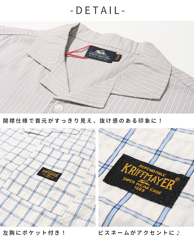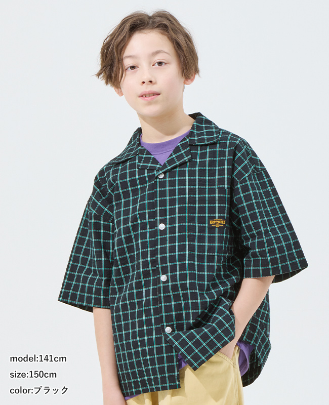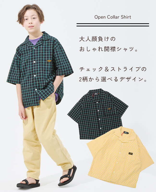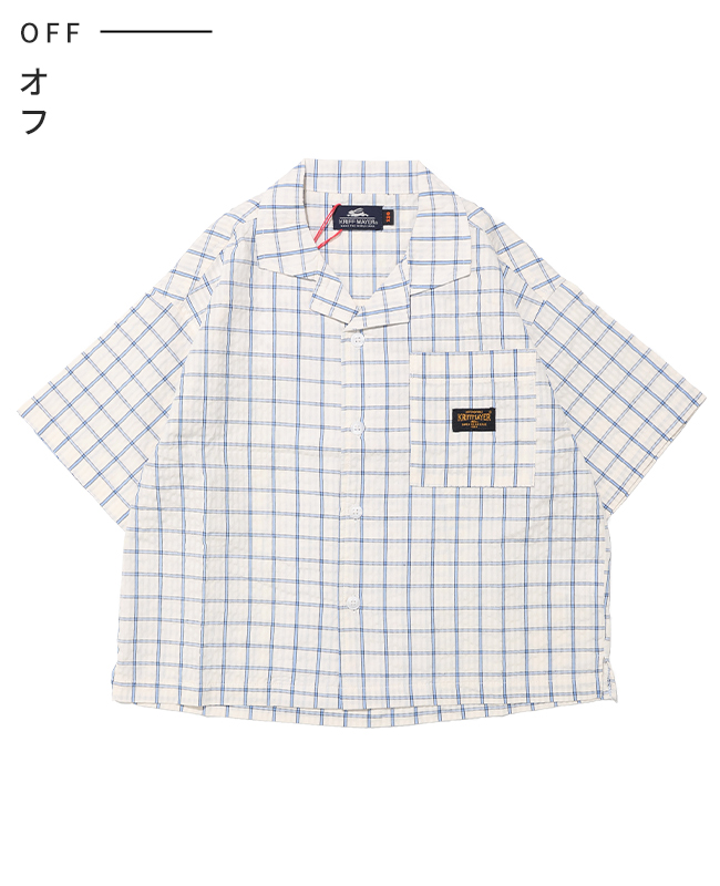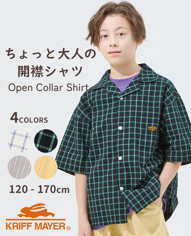 | 《KRIFF MAYER 2026夏アイテム「おでかけ開襟シャツ」》 「夏のおでかけスタイルを格上げする、大人顔負けの開襟シャツ」 チェック柄(オフホワイト・ブラック)には清涼感のあるシアサッカー素材を使用し、さらっと快適な着心地です。 ストライプ柄(ベージュ・イエロー)には綿100%のフラットなシャツ地を採用。 爽やかな色合いが目を惹き、夏らしい印象をプラスします。 大人っぽい開襟デザインで、少し肩の落ちたデザインなので、男女ともに着やすいシルエットです。 羽織るだけでコーディネートが高見えする、夏のおでかけに映える一枚です。 小学校低学年〜高学年の、キッズ〜ジュニアサイズに加え、 メンズSサイズ以下だけどキッズの160cmでもない。。。 そんな微妙な時期のお子様に対応する170cmまで! 【対象年齢・学年】 5歳、6歳、7歳、8歳、9歳、10歳、11歳、12歳、13歳、14歳、15歳、16歳、17歳 幼稚園年長、小学校1年生、2年生、3年生、4年生、5年生、6年生、中学校、高校生ぐらいまで、 幅広い年齢層に着用いただける、120cm 130cm 140cm 150cm 160cm 170cmの豊富な6サイズ展開です! | ||||||||||||||||||||||||||||||||||||||||||||