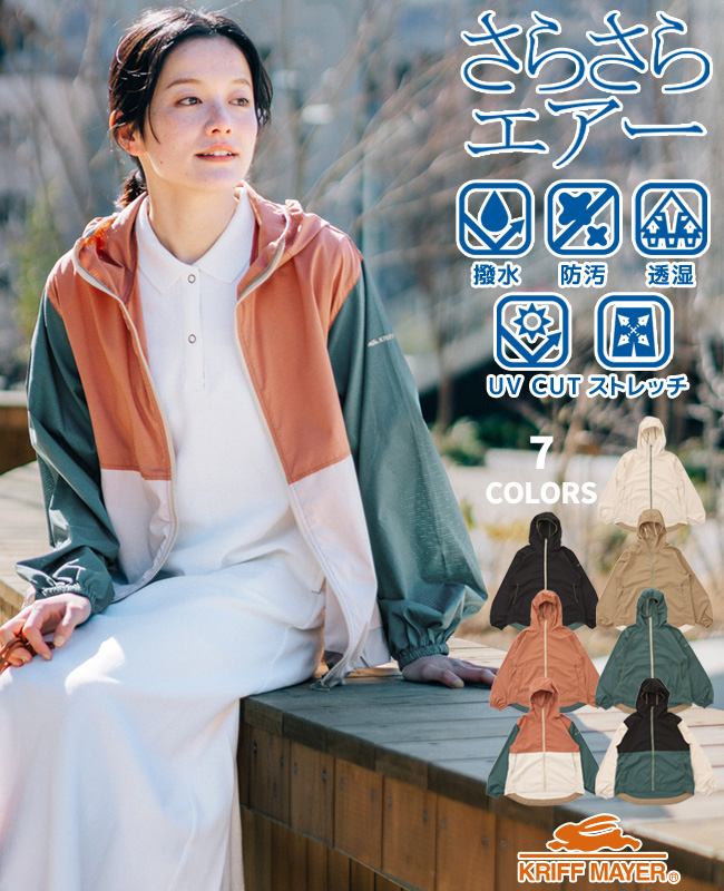 | 《KRIFF MAYER 夏アイテム「さらさらエアーフードJK」》 毎年大好評!軽くて爽快!! 撥水なのにメッシュ調に小さな通気孔があるため、一般的な羽織りよりも高い通気性を持つ【さらさらエアー素材】を使用したフードジャケットです。 今季はUVカット機能もプラスしており襟高で首まで日焼け対策が可能! ナチュラルなストレッチ性があり動きやすく、軽い着心地のライトアウターに仕上げました。 今年はより女性らしいシルエットにバージョンアップ! Aラインで裾が広がっているので腰周りの体形カバーにもなり、カジュアルに合わせやすいです。 裾にはアジャスターコードが付いており 絞ってトレンド感のある丸いシルエットなど気分で形を変えられます。 前後差のある後ろ裾ラウンドで重たくなり過ぎず、スッキリとした印象に! KRIFF MAYERらしい細部までこだわった配色感がポイント! 思わず他色買いしたくなるカラー展開です! こちらのアイテムは同素材のメンズアイテム(品番:2447800)とキッズアイテム(品番:J2447846)がございますので 家族で着心地を体感でき、お揃いコーデもお楽しみいただけます! 【対象 ※以下のような方に多くご利用いただいております。】 年代:10代、20代、30代、40代、50代〜 | ||||||||||||||||||||||||||||||||