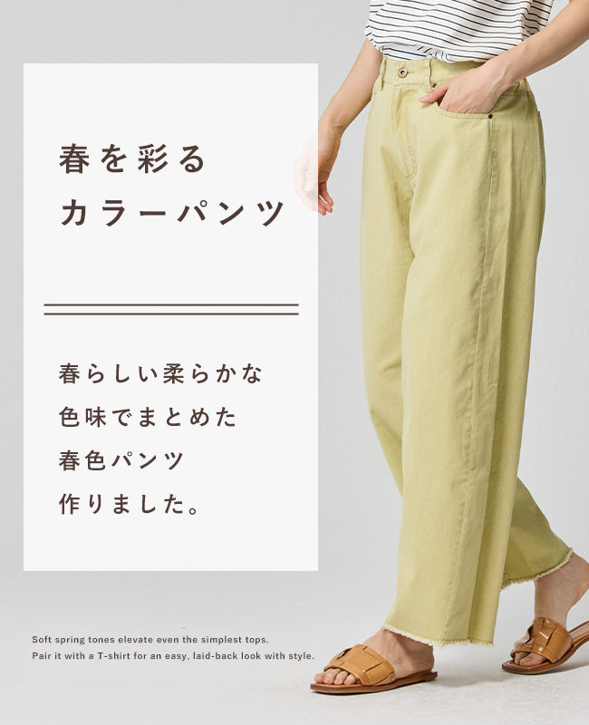 | 《KRIFF MAYER 春アイテム「ユーズド風カラーパンツ」》 春の気分にちょうどいい、 洗いの効いたカラーカーブパンツが登場! ゆったりとしたカーブシルエットで動きやすさがありつつ、 お尻まわりをすっきりと見せてくれる一枚。 ほどよい太さがラフになりすぎず大人っぽく仕上がります♪ 製品染めのようなニュアンスのある加工感で、 カラーアイテムでもコーディネートに取り入れやすい! 春らしいやわらかな色味がシンプルなトップスにもよく映えます! Tシャツにさらっと合わせるだけで、 こなれたカジュアルコーデの完成です♪ | ||||||||||||||||||||||||||||||||||||||||||||