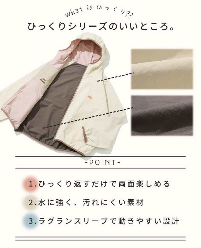| 《KRIFF MAYER 春アイテム「ひっくりライトジャケット」》 これ一枚で二役! リバーシブルデザインのひっくりライトJKが今年も登場! 表面はパイピングがポイントのシンプルでカジュアルなデザイン、 裏面はアウトドア風の切り替えデザインで、 表と裏で全く違う表情を楽しめます♪ 春らしい爽やかなカラーでご用意しました! 多色使いでも柔らかい色味でまとまっているので、 派手過ぎず周りと差がつく一枚です! 同コンセプトのメンズアイテム(品番:2536300)も展開しておりますので、 カップルやファミリーなど、ペアでお揃いがお楽しみいただけます♪ | |||||||||||||||||||||||||||||