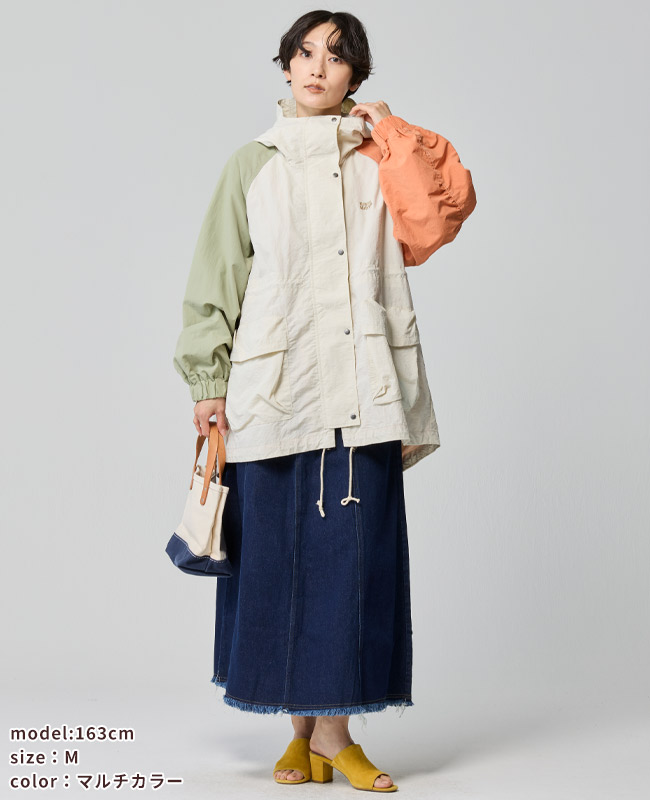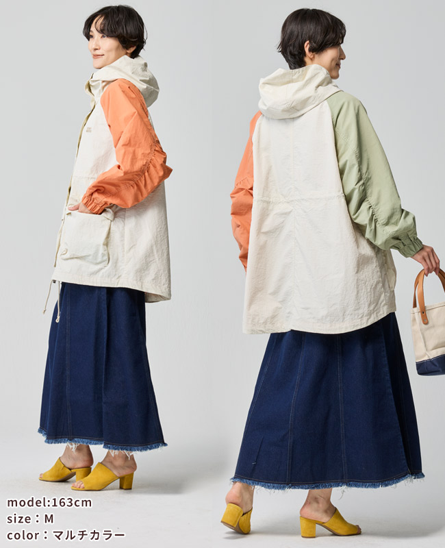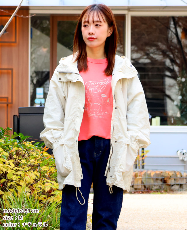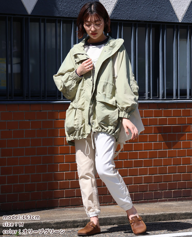 | 《KRIFF MAYER 春アイテム「クリーネスゆったりマウンテンパーカー」》 ミリタリーデザインを女性らしく仕上げた、春の主役アウター。 丈感とシルエットが大好評の、ゆったりマンパが今年も登場です。 ミドル丈×オーバーサイズ×ラグランスリーブで、どんなトップスの上からでもストレスなく羽織れてサマになる万能マウンテンパーカー。 撥水防汚加工で自転車通勤や通学など実用性も兼ね備えています。 ウエスト&裾にはドローストリングを配し、シルエットに変化を。 ウエストを絞れば、メリハリがつき可愛くスタイルアップが叶い、絞らず着用するとワイドにかっこいい雰囲気に。 裾をキュッと絞れば丸みのあるバルーンラインが生まれ可愛く、丈感の調節にもなります。 マチ付きのフラップパッチポケットなので収納力が高いだけでなく、視覚的なアクセントにもなり 袖のギャザーとファスナーが見えない前立て仕様でカジュアルすぎず、上品さたっぷりの大人スタイルが完成します。 襟高で前を閉めれば日差しを防ぎ、開けると自然に広がって抜け感と女性らしさも演出します。 ややマットな柔らかい色味の表地に、裏地には春を感じさせる優しいカラーを取り入れ、脱いだ時もさりげなくオシャレに。 メッシュになっているので通気性もよく、ロングシーズンお使いいただけます。 シンプルコーデに羽織るだけで、旬のスタイルが完成する優れものです。 ■CLEANNESS(クリーネス) この商品は、撥水・防汚加工を施した商品です。 完全防水ではないので、強い雨等に長時間あたると水分が浸透します。 内側からの湿気も通すので、ムレにくい特性を持ちます。 ※撥水/防汚加工は永久ではありません。 工場にて30回洗濯後に、効果に変わり無い事を確認していますが、使用状況や洗濯方法で個体差が出ますのでご了承下さい。 | ||||||||||||||||||||||