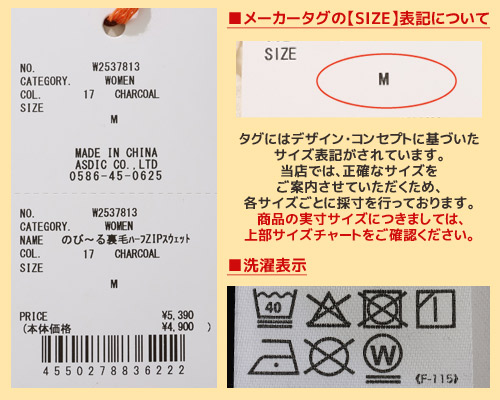 | ■中国製■ 【本体】綿55% ポリエステル42% ポリウレタン3% 【リブ部分】綿97% ポリウレタン3% | |||||||||||||||||||||||||||