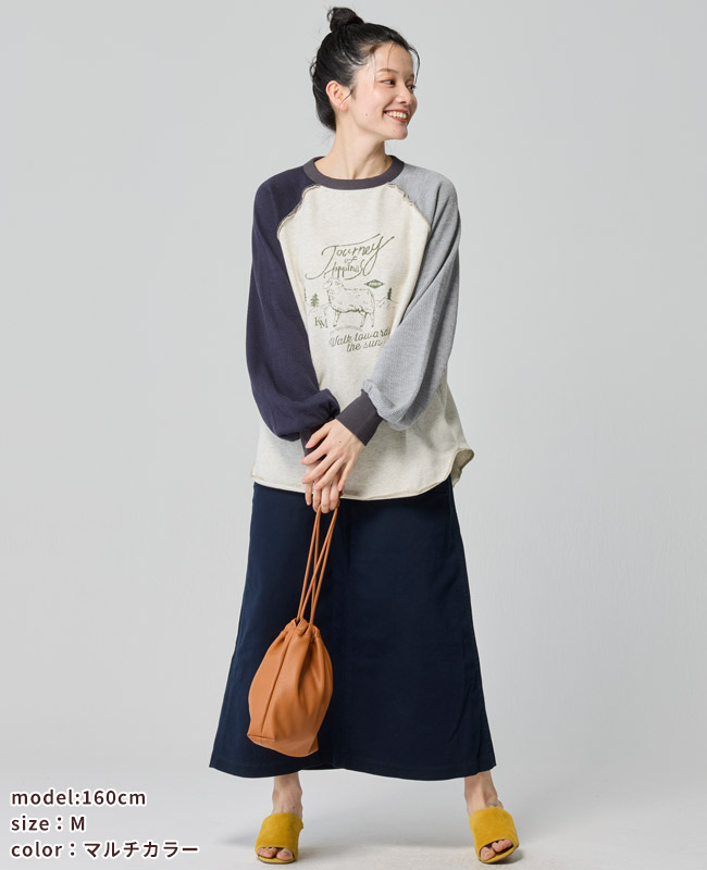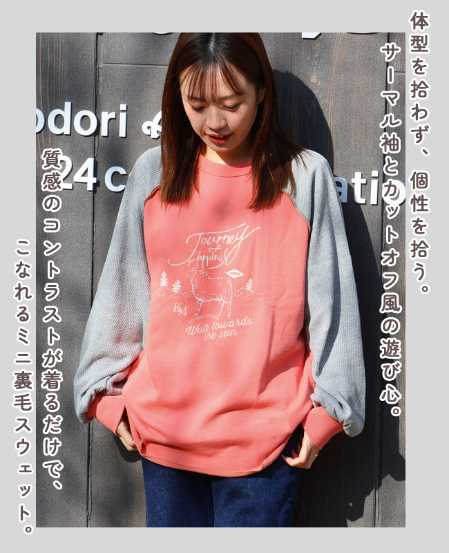 | 《KRIFF MAYER 春アイテム「のび~る裏毛異素材切替スウェット」》 伸縮性が高く動きやすいストレッチ裏毛素材を使ったのび〜る裏毛シリーズ。 ミニ裏毛生地をベースに、しっかりとしたKRIFFMAYERオリジナルのサーマル生地で袖を切替えた一枚。 身幅はややゆったりめな上にラグランスリーブでストレスなく着用いただけます! かすれフロントプリントに、ヴィンテージ感あるカットオフ風の裾や袖の切り替えで コーディネートに一癖加えながらも雰囲気良く合わせやすいです。 Tシャツ以上の生地厚で季節の変わり目に丁度いい万能おすすめアイテム! | ||||||||||||||||||||||