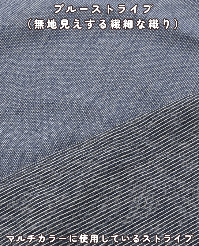 | ■中国製■ [ディープブルー・ライトブルー] 【本体】綿74% ポリエステル25% ポリウレタン1% [ブルーストライプ] 【本体】綿65% ポリエステル32% ポリウレタン3% [マルチカラー] 【無地部分】綿74% ポリエステル25% ポリウレタン1% 【ヒッコリー部分】綿65% ポリエステル32% ポリウレタン3% | |||||||||||||||||||||||||||