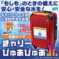 ●キャリーケース収納型浄水機「きゃりーぴゅあぴゅあJr.」は、雨水、井戸水、プールの水などから 安全・安心な飲料水、衛生水を作れる浄水装置です。