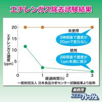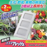 あっ!花びらが散っている、野菜が傷んでる・・・せっかく冷蔵庫に入れておいたのに、これでは売り物にならない・・・。ココスフレッシュならこんな悩みを解決します。生花や野菜、果物などは成熟するためにエチレンガスを出します。このエチレンガスが原因で、傷みを早めたり、微生物などの繁殖を活発にさせたりします。本製品は、その傷みの原因とされるエチレンガスをスピーディーに吸着分解する新発想グッズです。冷蔵庫に一つ入れてください。約2年間もの間、効果を持続し生花や野菜、果物類を長持ちさせてくれます。常温の状態でも使用可能です(空気の流れが多すぎる場所では効果が出にくくなります)。内容物は、身体に安全な物を使用した安心設計。
