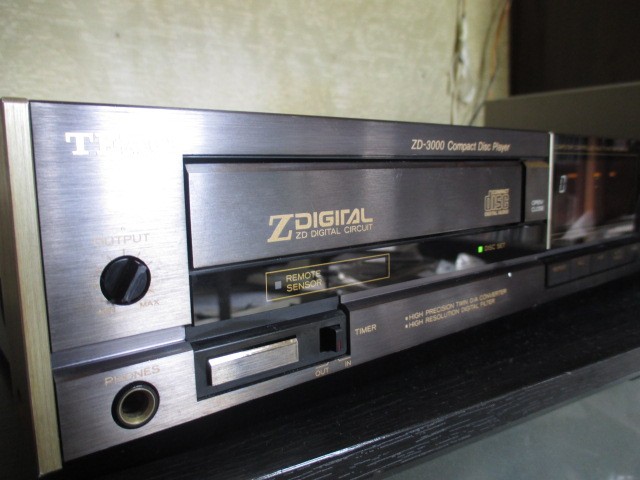商品コメント1985年に、ティアックから発売されましたフルサイズCDプレーヤー「ZD-3000」になります。定価は12,500円と、ハイエンド・クラスです。同年発売「ZD-5000」の弟分。