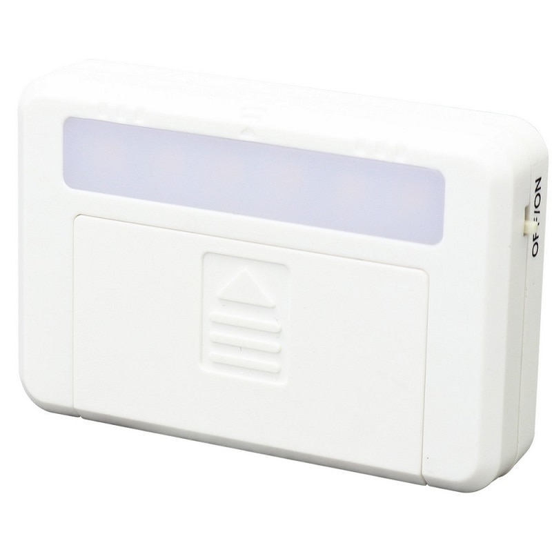 開閉センサー本体とスイッチに内蔵の磁石(センサー)が反応して、扉や引き出しが開くとライトが光る仕組みです。