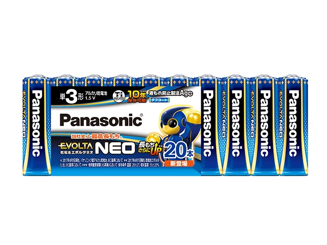 長もち性能10%アップ乾電池エボルタ(LR6EJ)比、IEC基準における全放電モードの平均値より。