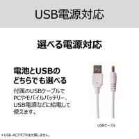 付属のUSBケーブルでお手持ちのPCやモバイルバッテリー、USB電源などに給電して手軽に使えます。