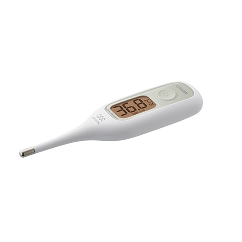 フィット感のある持ちやすいデザイン検温時にわきに挟むときや、検温結果の確認時、側面に指を置いた際にフィットした安定する形。