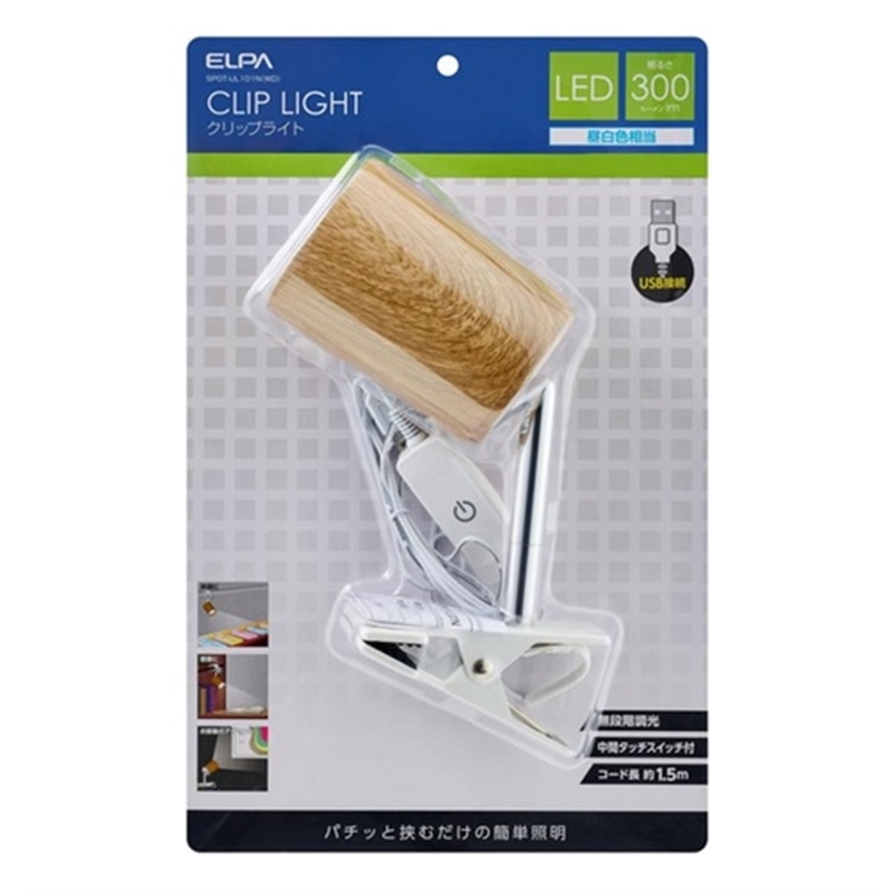 ELPA LEDクリップライト シリンダータイプ(クリップライト) SPOT-UL101N(WD) 木目調 ウッド