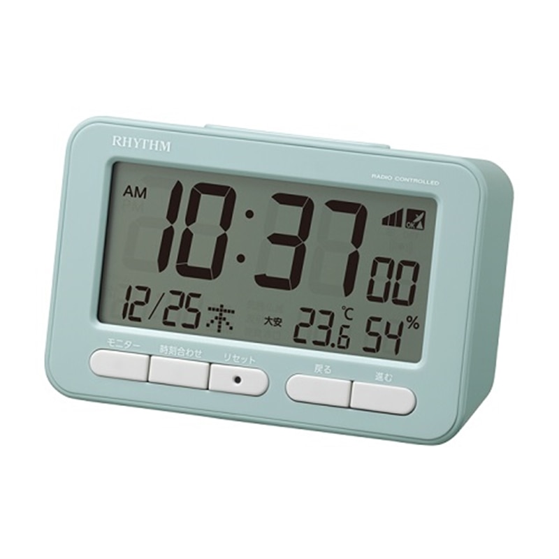 柔らかいフォルムの電波デジタル時計見やすい大きめのLCD(液晶)と柔らかいフォルムが特徴の電波デジタルめざまし時計です。