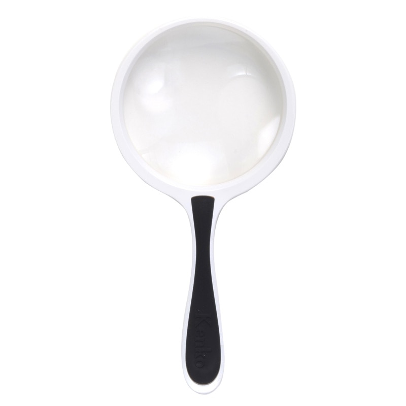 白と黒のツートンカラーでシンプルデザインの手持ちルーペ。重さわずか37g。